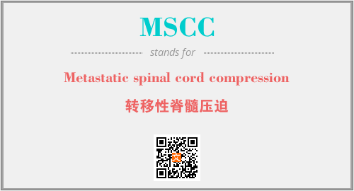 上述内容是“Metastatic spinal cord compression”作为“MSCC”的缩写,解释为“转移性脊髓压迫”时的信息,以及英文缩略词MSCC所代表的英文单词,其对应的中文拼音、详细解释以及在英文中的流行度和相关分类、应用领域及应用示例等。