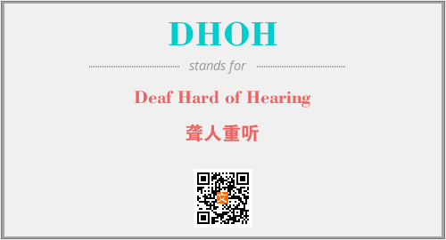 英文缩略词“DHOH”经常作为“Deaf Hard of Hearing”的英文缩写来使用,中文表示:“聋人重听”。本文将详细介绍英文缩写词DHOH所代表英文单词,其对应的中文拼音、详细解释以及在英语中的流行度。此外,还有关于缩略词DHOH的分类、应用领域及相关应用示例等。