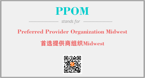 上述内容是“Preferred Provider Organization Midwest”作为“PPOM”的缩写,解释为“首选提供商组织Midwest”时的信息,以及英文缩略词PPOM所代表的英文单词,其对应的中文拼音、详细解释以及在英文中的流行度和相关分类、应用领域及应用示例等。