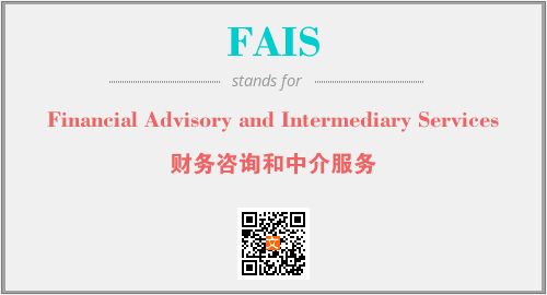 上述内容是“Financial Advisory and Intermediary Services”作为“FAIS”的缩写,解释为“财务咨询和中介服务”时的信息,以及英文缩略词FAIS所代表的英文单词,其对应的中文拼音、详细解释以及在英文中的流行度和相关分类、应用领域及应用示例等。