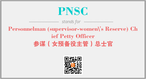 上述内容是“Personnelman (supervisor-women\'s Reserve) Chief Petty Officer”作为“PNSC”的缩写,解释为“参谋(女预备役主管)总士官”时的信息,以及英文缩略词PNSC所代表的英文单词,其对应的中文拼音、详细解释以及在英文中的流行度和相关分类、应用领域及应用示例等。