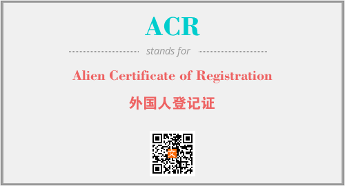 英文缩略词“ACR”经常作为“Alien Certificate of Registration”的英文缩写来使用,中文表示:“外国人登记证”。本文将详细介绍英文缩写词ACR所代表英文单词,其对应的中文拼音、详细解释以及在英语中的流行度。此外,还有关于缩略词ACR的分类、应用领域及相关应用示例等。