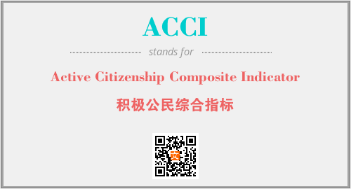 上述内容是“Active Citizenship Composite Indicator”作为“ACCI”的缩写,解释为“积极公民综合指标”时的信息,以及英文缩略词ACCI所代表的英文单词,其对应的中文拼音、详细解释以及在英文中的流行度和相关分类、应用领域及应用示例等。