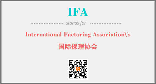 英文缩略词“IFA”经常作为“International Factoring Association\'s”的英文缩写来使用,中文表示:“国际保理协会”。本文将详细介绍英文缩写词IFA所代表英文单词,其对应的中文拼音、详细解释以及在英语中的流行度。此外,还有关于缩略词IFA的分类、应用领域及相关应用示例等。
