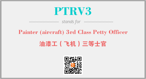 上述内容是“Painter (aircraft) 3rd Class Petty Officer”作为“PTRV3”的缩写,解释为“油漆工(飞机)三等士官”时的信息,以及英文缩略词PTRV3所代表的英文单词,其对应的中文拼音、详细解释以及在英文中的流行度和相关分类、应用领域及应用示例等。