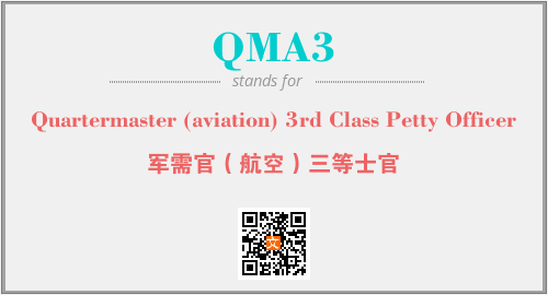上述内容是“Quartermaster (aviation) 3rd Class Petty Officer”作为“QMA3”的缩写,解释为“军需官(航空)三等士官”时的信息,以及英文缩略词QMA3所代表的英文单词,其对应的中文拼音、详细解释以及在英文中的流行度和相关分类、应用领域及应用示例等。