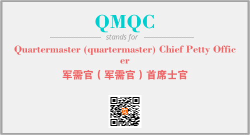 上述内容是“Quartermaster (quartermaster) Chief Petty Officer”作为“QMQC”的缩写,解释为“军需官(军需官)首席士官”时的信息,以及英文缩略词QMQC所代表的英文单词,其对应的中文拼音、详细解释以及在英文中的流行度和相关分类、应用领域及应用示例等。