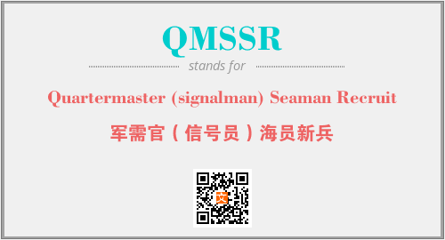 上述内容是“Quartermaster (signalman) Seaman Recruit”作为“QMSSR”的缩写,解释为“军需官(信号员)海员新兵”时的信息,以及英文缩略词QMSSR所代表的英文单词,其对应的中文拼音、详细解释以及在英文中的流行度和相关分类、应用领域及应用示例等。