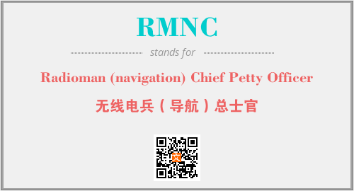 英文缩略词“RMNC”经常作为“Radioman (navigation) Chief Petty Officer”的英文缩写来使用,中文表示:“无线电兵(导航)总士官”。本文将详细介绍英文缩写词RMNC所代表英文单词,其对应的中文拼音、详细解释以及在英语中的流行度。此外,还有关于缩略词RMNC的分类、应用领域及相关应用示例等。