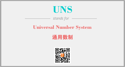 上述内容是“Universal Number System”作为“UNS”的缩写,解释为“通用数制”时的信息,以及英文缩略词UNS所代表的英文单词,其对应的中文拼音、详细解释以及在英文中的流行度和相关分类、应用领域及应用示例等。