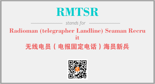 英文缩略词“RMTSR”经常作为“Radioman (telegrapher Landline) Seaman Recruit”的英文缩写来使用,中文表示:“无线电员(电报固定电话)海员新兵”。本文将详细介绍英文缩写词RMTSR所代表英文单词,其对应的中文拼音、详细解释以及在英语中的流行度。此外,还有关于缩略词RMTSR的分类、应用领域及相关应用示例等。