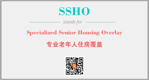 上述内容是“Specialized Senior Housing Overlay”作为“SSHO”的缩写,解释为“专业老年人住房覆盖”时的信息,以及英文缩略词SSHO所代表的英文单词,其对应的中文拼音、详细解释以及在英文中的流行度和相关分类、应用领域及应用示例等。