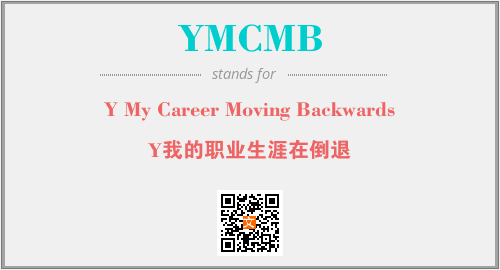 上述内容是“Y My Career Moving Backwards”作为“YMCMB”的缩写,解释为“Y我的职业生涯在倒退”时的信息,以及英文缩略词YMCMB所代表的英文单词,其对应的中文拼音、详细解释以及在英文中的流行度和相关分类、应用领域及应用示例等。