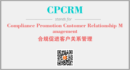 以上为Compliance Promotion Customer Relationship Management英文缩略词CPCRM的中文解释,以及该英文缩写在英语的流行度、分类和应用领域方面的信息。