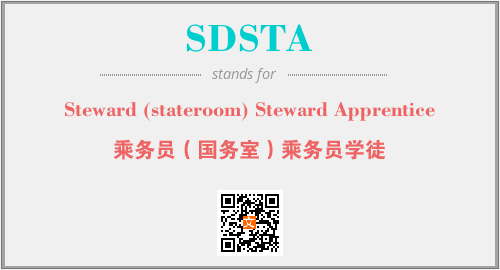 上述内容是“Steward (stateroom) Steward Apprentice”作为“SDSTA”的缩写,解释为“乘务员(国务室)乘务员学徒”时的信息,以及英文缩略词SDSTA所代表的英文单词,其对应的中文拼音、详细解释以及在英文中的流行度和相关分类、应用领域及应用示例等。