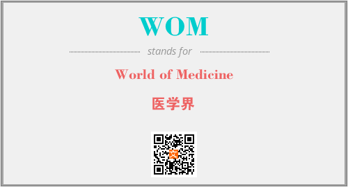 英文缩略词“WOM”经常作为“World of Medicine”的英文缩写来使用,中文表示:“医学界”。本文将详细介绍英文缩写词WOM所代表英文单词,其对应的中文拼音、详细解释以及在英语中的流行度。此外,还有关于缩略词WOM的分类、应用领域及相关应用示例等。