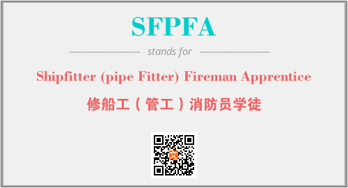 上述内容是“Shipfitter (pipe Fitter) Fireman Apprentice”作为“SFPFA”的缩写,解释为“修船工(管工)消防员学徒”时的信息,以及英文缩略词SFPFA所代表的英文单词,其对应的中文拼音、详细解释以及在英文中的流行度和相关分类、应用领域及应用示例等。