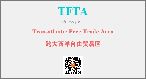英文缩略词“TFTA”经常作为“Transatlantic Free Trade Area”的英文缩写来使用,中文表示:“跨大西洋自由贸易区”。本文将详细介绍英文缩写词TFTA所代表英文单词,其对应的中文拼音、详细解释以及在英语中的流行度。此外,还有关于缩略词TFTA的分类、应用领域及相关应用示例等。