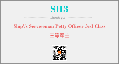 上述内容是“Ship\'s Serviceman Petty Officer 3rd Class”作为“SH3”的缩写,解释为“三等军士”时的信息,以及英文缩略词SH3所代表的英文单词,其对应的中文拼音、详细解释以及在英文中的流行度和相关分类、应用领域及应用示例等。