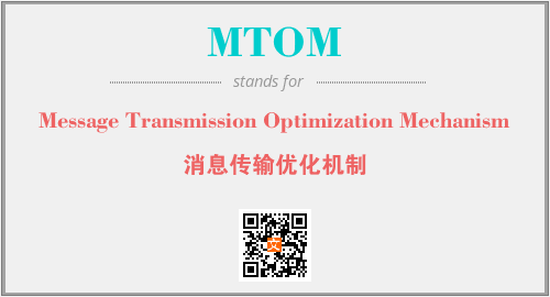 英文缩略词“MTOM”经常作为“Message Transmission Optimization Mechanism”的英文缩写来使用,中文表示:“消息传输优化机制”。本文将详细介绍英文缩写词MTOM所代表英文单词,其对应的中文拼音、详细解释以及在英语中的流行度。此外,还有关于缩略词MTOM的分类、应用领域及相关应用示例等。