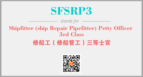 上述内容是“Shipfitter (ship Repair Pipefitter) Petty Officer 3rd Class”作为“SFSRP3”的缩写,解释为“修船工(修船管工)三等士官”时的信息,以及英文缩略词SFSRP3所代表的英文单词,其对应的中文拼音、详细解释以及在英文中的流行度和相关分类、应用领域及应用示例等。