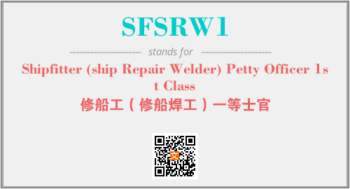 英文缩略词“SFSRW1”经常作为“Shipfitter (ship Repair Welder) Petty Officer 1st Class”的英文缩写来使用,中文表示:“修船工(修船焊工)一等士官”。本文将详细介绍英文缩写词SFSRW1所代表英文单词,其对应的中文拼音、详细解释以及在英语中的流行度。此外,还有关于缩略词SFSRW1的分类、应用领域及相关应用示例等。