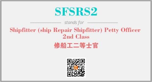 英文缩略词“SFSRS2”经常作为“Shipfitter (ship Repair Shipfitter) Petty Officer 2nd Class”的英文缩写来使用,中文表示:“修船工二等士官”。本文将详细介绍英文缩写词SFSRS2所代表英文单词,其对应的中文拼音、详细解释以及在英语中的流行度。此外,还有关于缩略词SFSRS2的分类、应用领域及相关应用示例等。