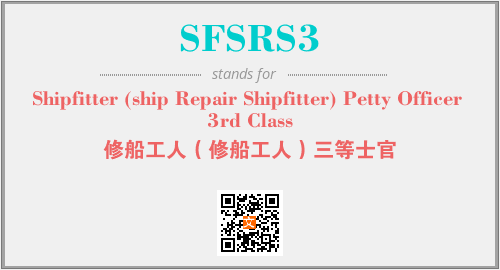 上述内容是“Shipfitter (ship Repair Shipfitter) Petty Officer 3rd Class”作为“SFSRS3”的缩写,解释为“修船工人(修船工人)三等士官”时的信息,以及英文缩略词SFSRS3所代表的英文单词,其对应的中文拼音、详细解释以及在英文中的流行度和相关分类、应用领域及应用示例等。