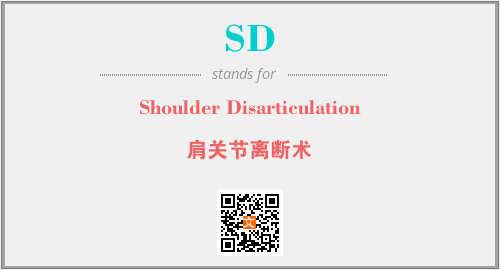 英文缩略词“SD”经常作为“Shoulder Disarticulation”的英文缩写来使用,中文表示:“肩关节离断术”。本文将详细介绍英文缩写词SD所代表英文单词,其对应的中文拼音、详细解释以及在英语中的流行度。此外,还有关于缩略词SD的分类、应用领域及相关应用示例等。