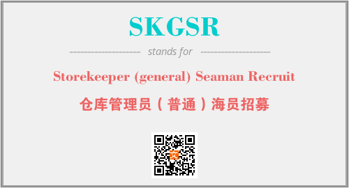 上述内容是“Storekeeper (general) Seaman Recruit”作为“SKGSR”的缩写,解释为“仓库管理员(普通)海员招募”时的信息,以及英文缩略词SKGSR所代表的英文单词,其对应的中文拼音、详细解释以及在英文中的流行度和相关分类、应用领域及应用示例等。