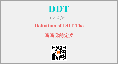 英文缩略词“DDT”经常作为“Definition of DDT The”的英文缩写来使用,中文表示:“滴滴涕的定义”。本文将详细介绍英文缩写词DDT所代表英文单词,其对应的中文拼音、详细解释以及在英语中的流行度。此外,还有关于缩略词DDT的分类、应用领域及相关应用示例等。