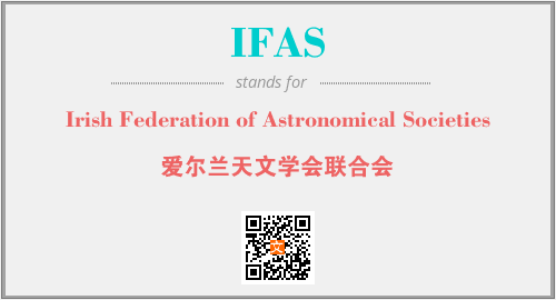 上述内容是“Irish Federation of Astronomical Societies”作为“IFAS”的缩写,解释为“爱尔兰天文学会联合会”时的信息,以及英文缩略词IFAS所代表的英文单词,其对应的中文拼音、详细解释以及在英文中的流行度和相关分类、应用领域及应用示例等。