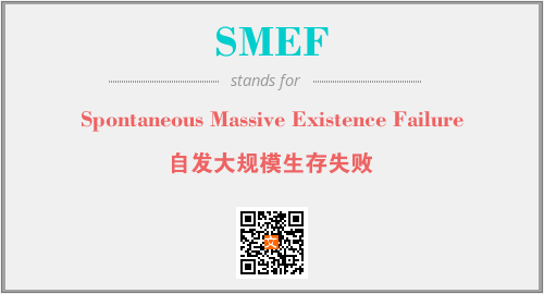 上述内容是“Spontaneous Massive Existence Failure”作为“SMEF”的缩写,解释为“自发大规模生存失败”时的信息,以及英文缩略词SMEF所代表的英文单词,其对应的中文拼音、详细解释以及在英文中的流行度和相关分类、应用领域及应用示例等。