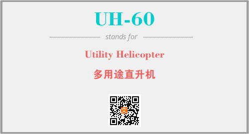 英文缩略词“UH-60”经常作为“Utility Helicopter”的英文缩写来使用,中文表示:“多用途直升机”。本文将详细介绍英文缩写词UH-60所代表英文单词,其对应的中文拼音、详细解释以及在英语中的流行度。此外,还有关于缩略词UH-60的分类、应用领域及相关应用示例等。