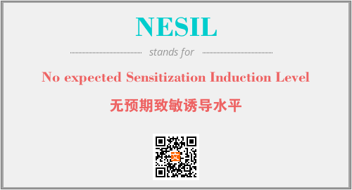 上述内容是“No expected Sensitization Induction Level”作为“NESIL”的缩写,解释为“无预期致敏诱导水平”时的信息,以及英文缩略词NESIL所代表的英文单词,其对应的中文拼音、详细解释以及在英文中的流行度和相关分类、应用领域及应用示例等。