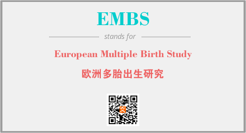 上述内容是“European Multiple Birth Study”作为“EMBS”的缩写,解释为“欧洲多胎出生研究”时的信息,以及英文缩略词EMBS所代表的英文单词,其对应的中文拼音、详细解释以及在英文中的流行度和相关分类、应用领域及应用示例等。