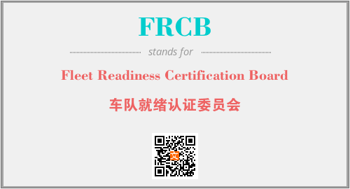 英文缩略词“FRCB”经常作为“Fleet Readiness Certification Board”的英文缩写来使用,中文表示:“车队就绪认证委员会”。本文将详细介绍英文缩写词FRCB所代表英文单词,其对应的中文拼音、详细解释以及在英语中的流行度。此外,还有关于缩略词FRCB的分类、应用领域及相关应用示例等。