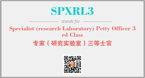 上述内容是“Specialist (research Laboratory) Petty Officer 3rd Class”作为“SPXRL3”的缩写,解释为“专家(研究实验室)三等士官”时的信息,以及英文缩略词SPXRL3所代表的英文单词,其对应的中文拼音、详细解释以及在英文中的流行度和相关分类、应用领域及应用示例等。