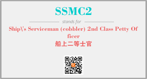 上述内容是“Ship\'s Serviceman (cobbler) 2nd Class Petty Officer”作为“SSMC2”的缩写,解释为“船上二等士官”时的信息,以及英文缩略词SSMC2所代表的英文单词,其对应的中文拼音、详细解释以及在英文中的流行度和相关分类、应用领域及应用示例等。