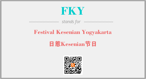 英文缩略词“FKY”经常作为“Festival Kesenian Yogyakarta”的英文缩写来使用,中文表示:“日惹Kesenian节日”。本文将详细介绍英文缩写词FKY所代表英文单词,其对应的中文拼音、详细解释以及在英语中的流行度。此外,还有关于缩略词FKY的分类、应用领域及相关应用示例等。