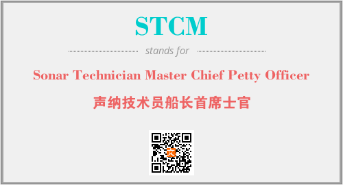 英文缩略词“STCM”经常作为“Sonar Technician Master Chief Petty Officer”的英文缩写来使用,中文表示:“声纳技术员船长首席士官”。本文将详细介绍英文缩写词STCM所代表英文单词,其对应的中文拼音、详细解释以及在英语中的流行度。此外,还有关于缩略词STCM的分类、应用领域及相关应用示例等。