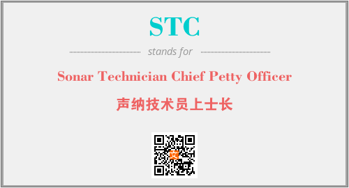 英文缩略词“STC”经常作为“Sonar Technician Chief Petty Officer”的英文缩写来使用,中文表示:“声纳技术员上士长”。本文将详细介绍英文缩写词STC所代表英文单词,其对应的中文拼音、详细解释以及在英语中的流行度。此外,还有关于缩略词STC的分类、应用领域及相关应用示例等。