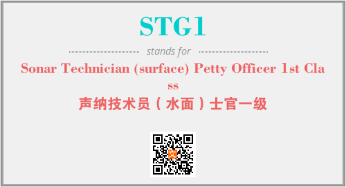 上述内容是“Sonar Technician (surface) Petty Officer 1st Class”作为“STG1”的缩写,解释为“声纳技术员(水面)士官一级”时的信息,以及英文缩略词STG1所代表的英文单词,其对应的中文拼音、详细解释以及在英文中的流行度和相关分类、应用领域及应用示例等。