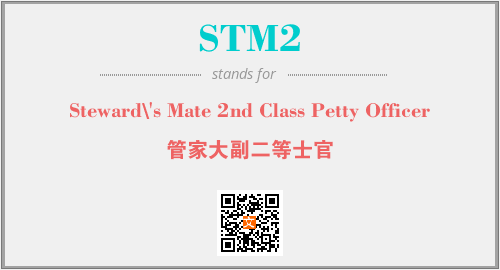 上述内容是“Steward\'s Mate 2nd Class Petty Officer”作为“STM2”的缩写,解释为“管家大副二等士官”时的信息,以及英文缩略词STM2所代表的英文单词,其对应的中文拼音、详细解释以及在英文中的流行度和相关分类、应用领域及应用示例等。