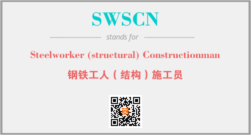 上述内容是“Steelworker (structural) Constructionman”作为“SWSCN”的缩写,解释为“钢铁工人(结构)施工员”时的信息,以及英文缩略词SWSCN所代表的英文单词,其对应的中文拼音、详细解释以及在英文中的流行度和相关分类、应用领域及应用示例等。