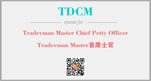 英文缩略词“TDCM”经常作为“Tradevman Master Chief Petty Officer”的英文缩写来使用,中文表示:“Tradevman Master首席士官”。本文将详细介绍英文缩写词TDCM所代表英文单词,其对应的中文拼音、详细解释以及在英语中的流行度。此外,还有关于缩略词TDCM的分类、应用领域及相关应用示例等。