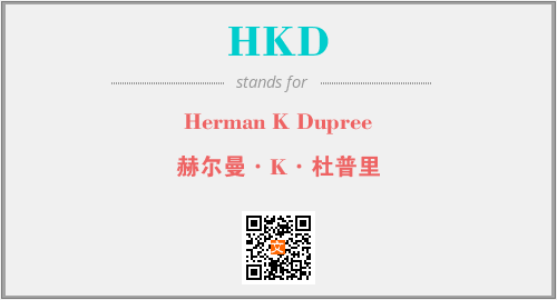 上述内容是“Herman K Dupree”作为“HKD”的缩写,解释为“赫尔曼·K·杜普里”时的信息,以及英文缩略词HKD所代表的英文单词,其对应的中文拼音、详细解释以及在英文中的流行度和相关分类、应用领域及应用示例等。