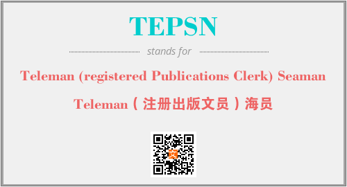 以上为Teleman (registered Publications Clerk) Seaman英文缩略词TEPSN的中文解释,以及该英文缩写在英语的流行度、分类和应用领域方面的信息。