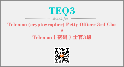 以上为Teleman (cryptographer) Petty Officer 3rd Class英文缩略词TEQ3的中文解释,以及该英文缩写在英语的流行度、分类和应用领域方面的信息。