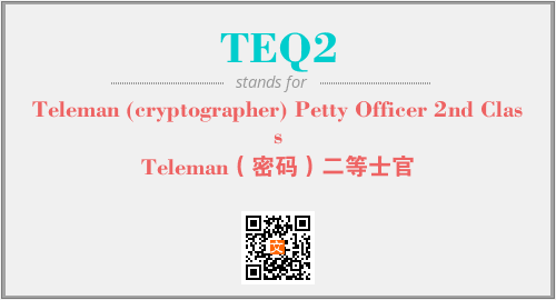 以上为Teleman (cryptographer) Petty Officer 2nd Class英文缩略词TEQ2的中文解释,以及该英文缩写在英语的流行度、分类和应用领域方面的信息。
